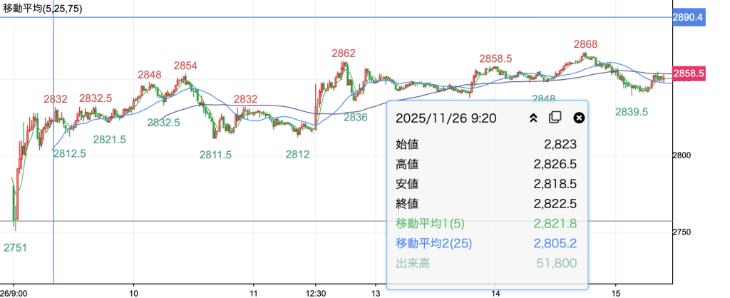前日終値(2785)でプラ転したところで即きるべきだったか?